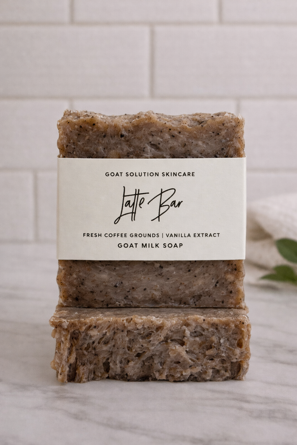 Saponified 100% Raw Farm Fresh Goat Milk, Organic Extra Virgin Olive Oil, Organic Coconut Oil, Raw African Shea Butter, Organic Sunflower Oil, Local Honey, Fresh Ground Coffee from Solai Coffee LLC, Vanilla