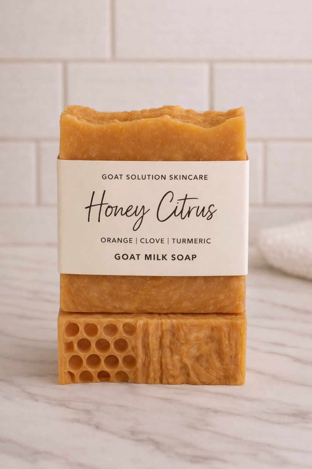 Our Honey Citrus Goat Milk Soap blends golden honey, bright orange, and creamy goat milk to refresh and restore. The uplifting scent of citrus meets the sweetness of honey for a bar that hydrates, brightens, and leaves your skin glowing.