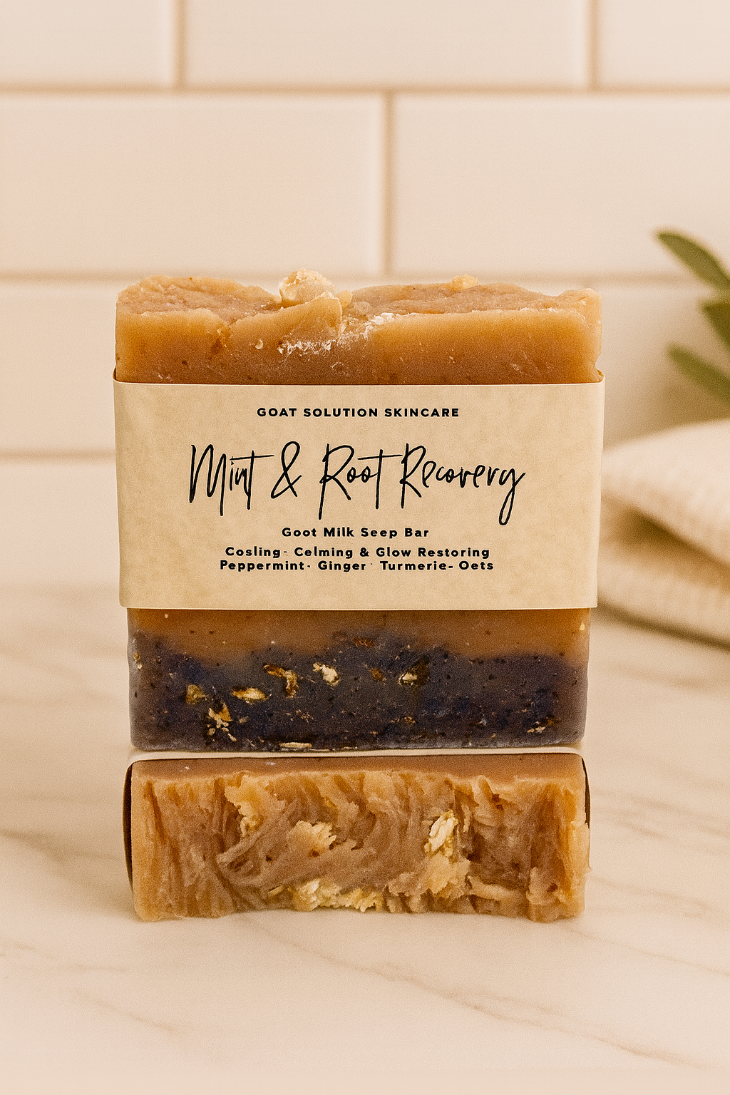 A refreshing, restorative bar made with raw goat milk, peppermint, fermented ginger & turmeric, local honey, oats, and botanical oils. This bar soothes overheated, sun-stressed skin while promoting glow and gentle hydration perfect for summer recovery and daily skin renewal.