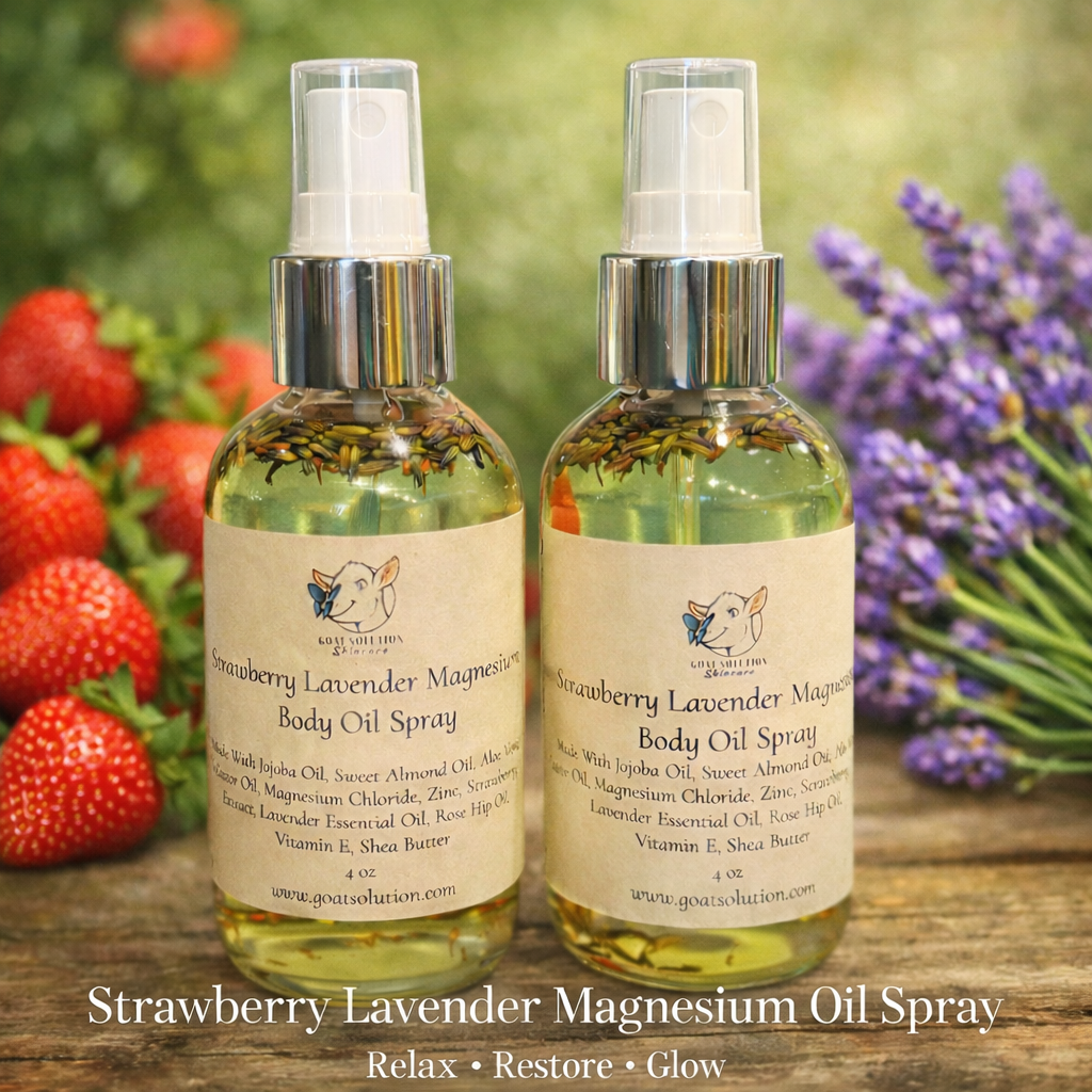 Wrap your skin and hair in pure nourishment with our Strawberry & Lavender Magnesium Oil — a luxurious, multi-purpose blend designed to hydrate, restore, and calm from head to toe.